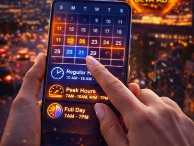 Browse our real-time calendar and pick the perfect space for your advertisement. Consider peak hours for maximum visibility and impact.